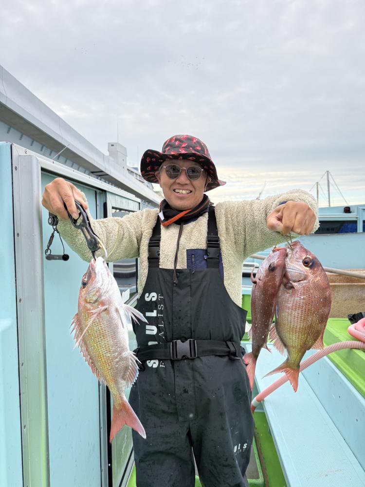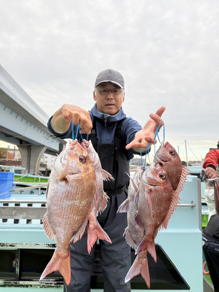 今日もありがとうございました。すぐ型も出して、反応がガッチリ出てきたら安定感抜群の釣れ方に。潮止まり前後に当たりが悪くなりましたが、上げ潮がきてから再び当たりだして中型主体に釣らせてもらえました。明日は4人で確定になってます。小人数なのでご予約なしでも乗船出来ます。宜しくお願いします。