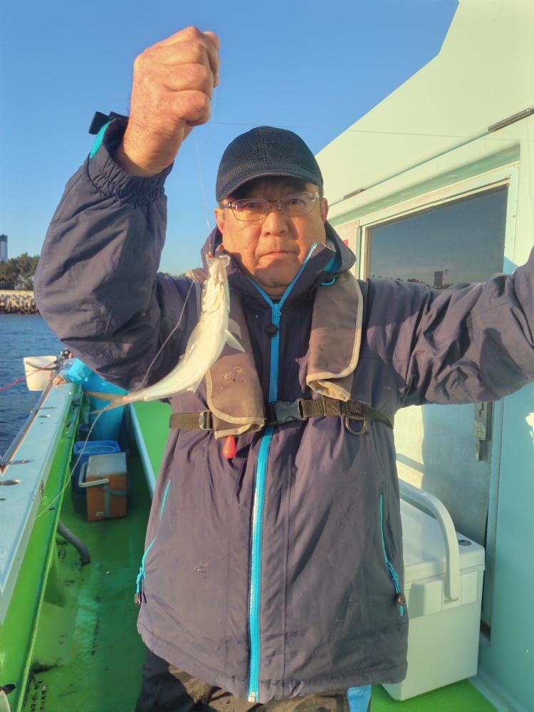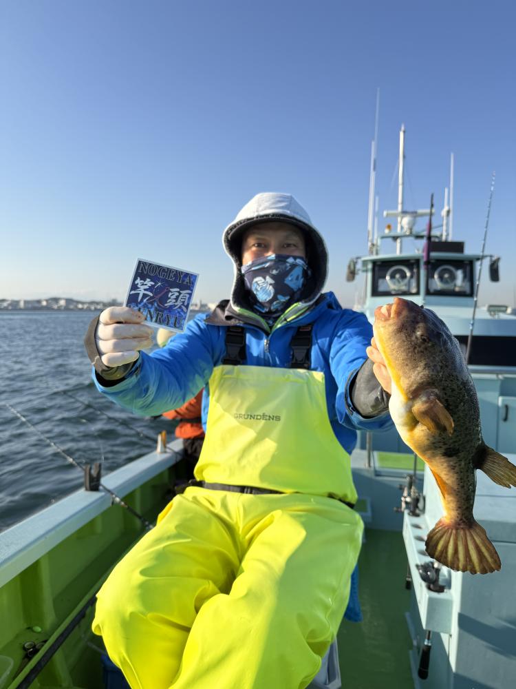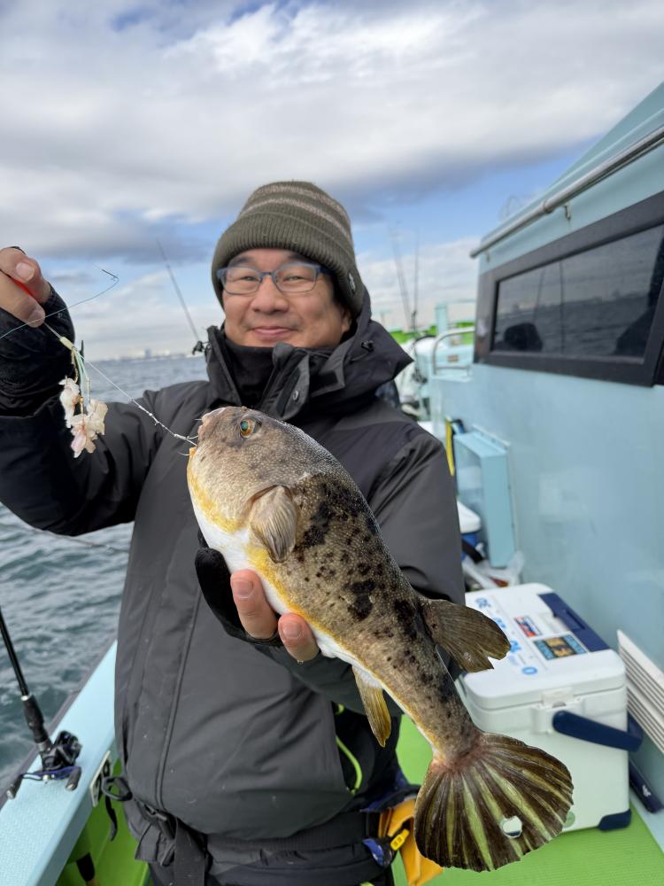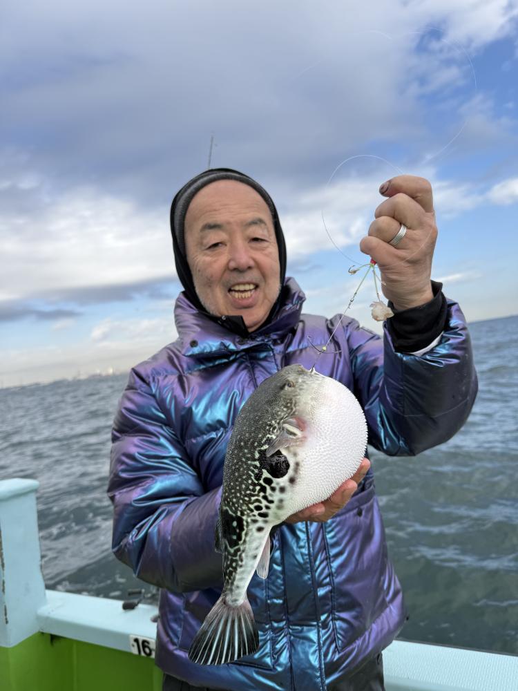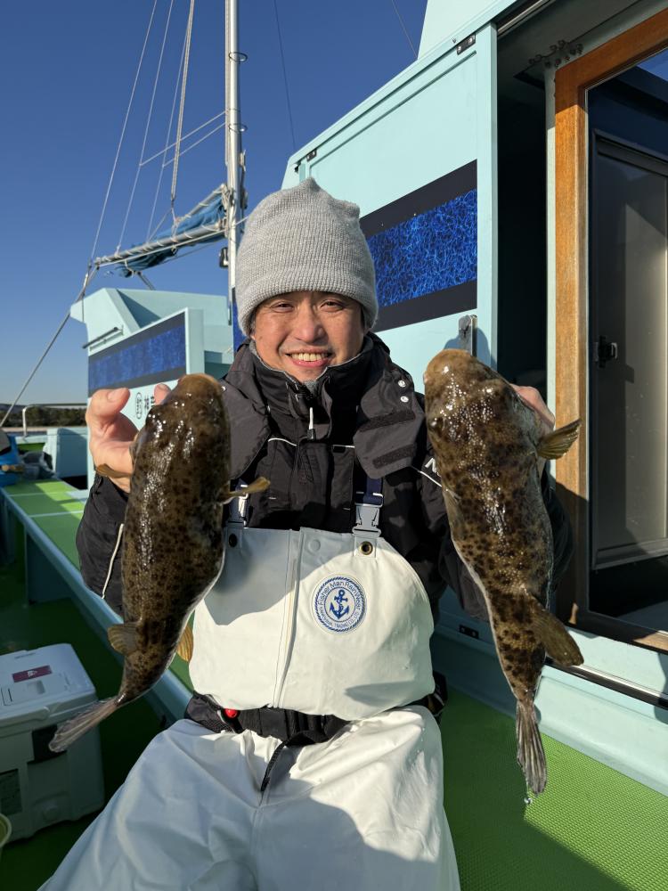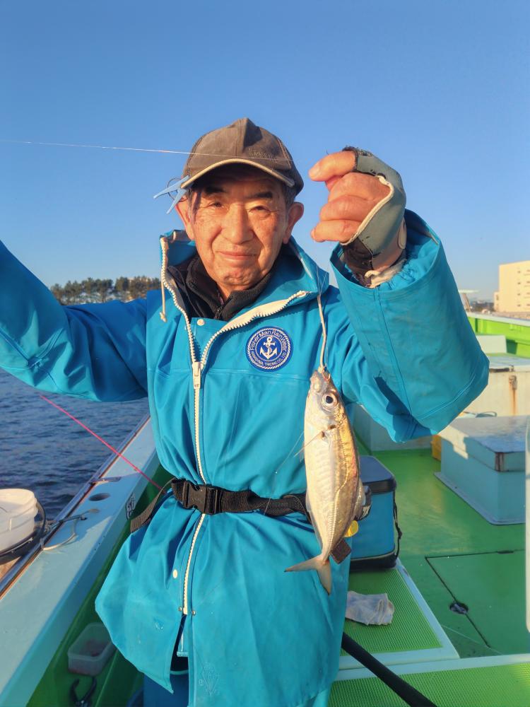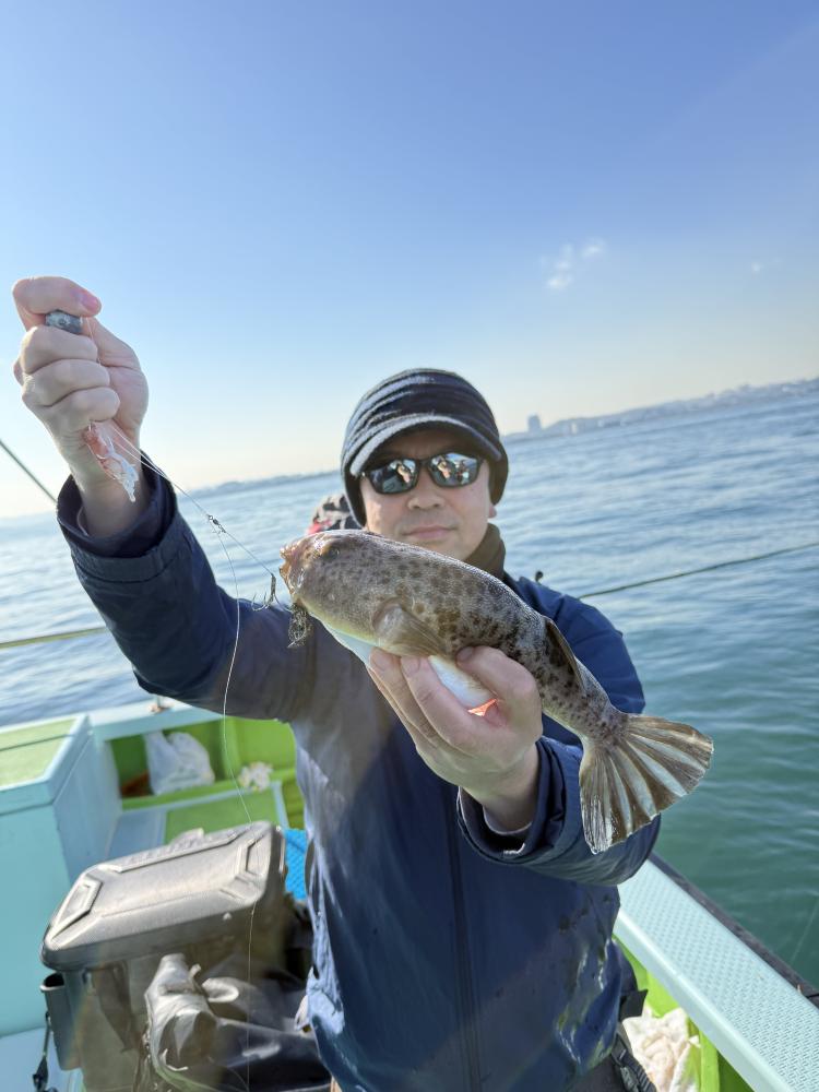お客様8名で出船しました。一日中ポツポツとアタリ、バレもありましたがトップは10回ヒットで10枚ゲット!1名型を見られず残念でしたが、船中23枚でした。型は1㎏位が多かったです。外道は、ホウボウ、カサゴ、ムシガレイ、トラフグ、ショゴでした。明日は北風が強く出船中止です。明後日は風は収まり出船したいのですが予約は今の所1名です。2名からの出船になりますので、ご予約よろしくお願いします。年老いたキャプテン勇治。