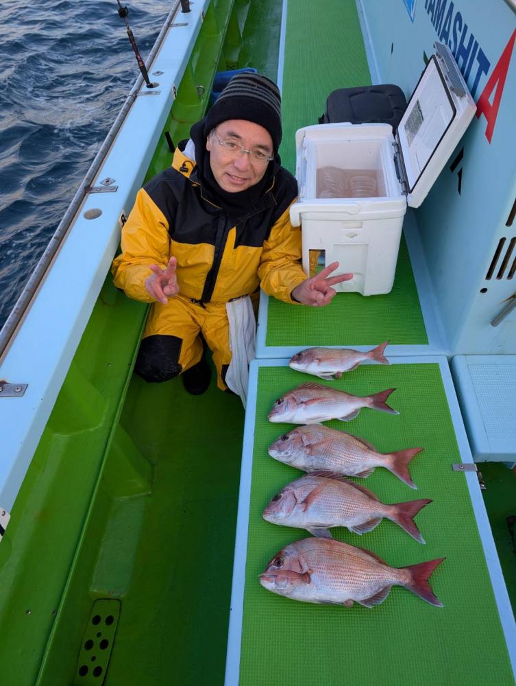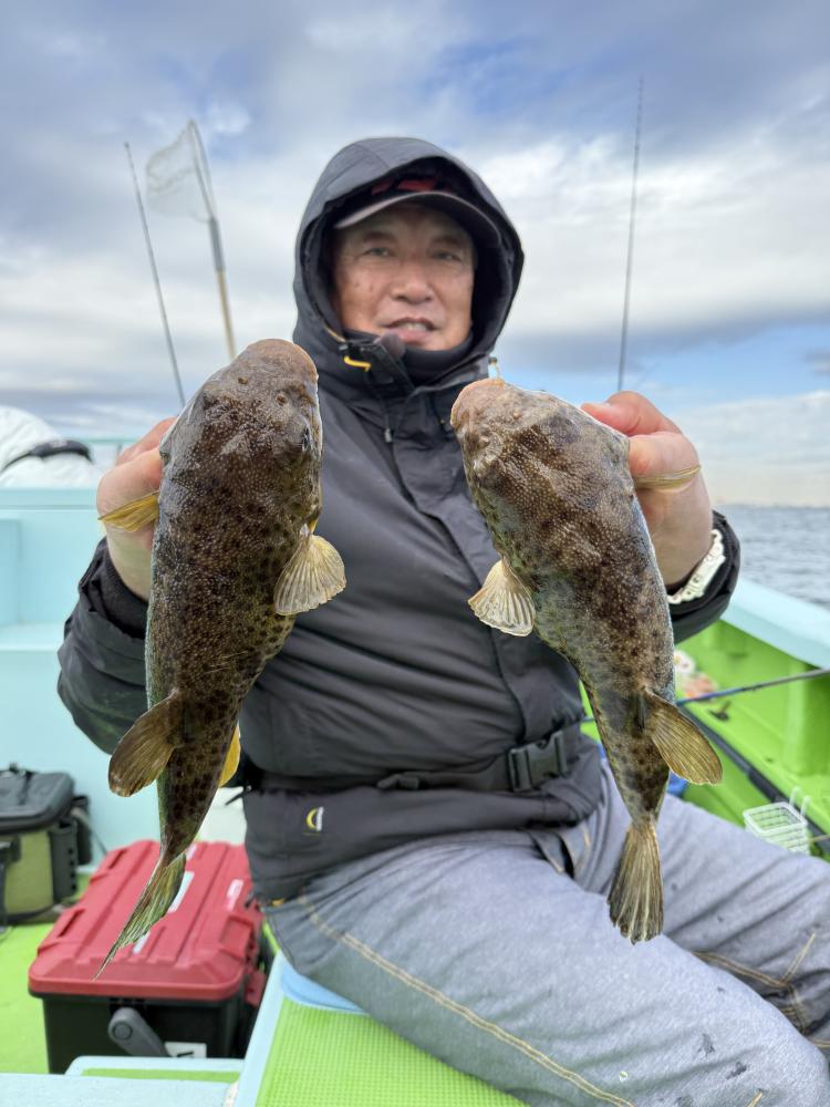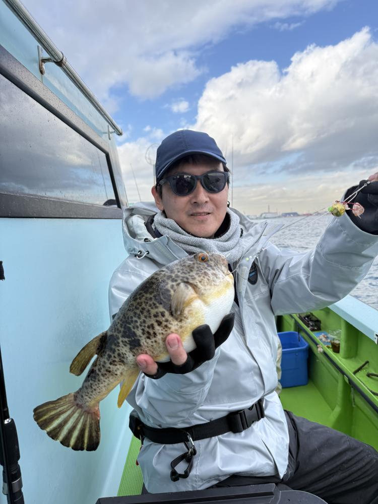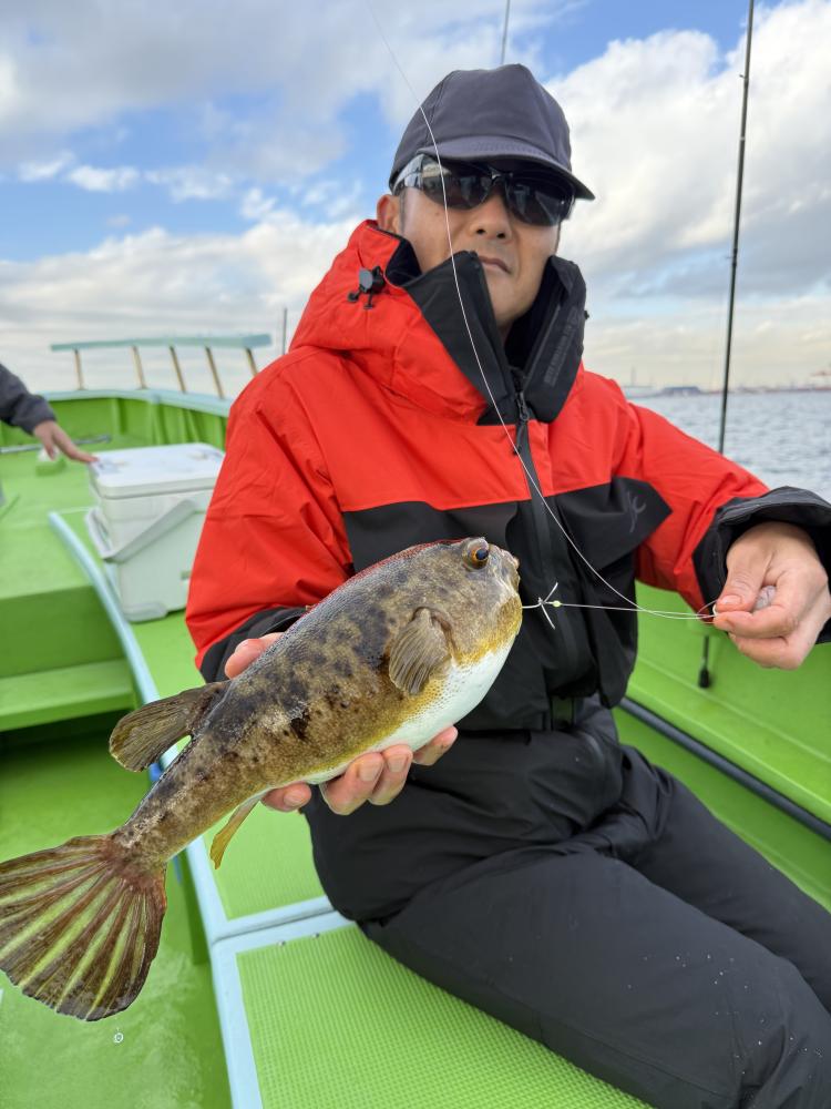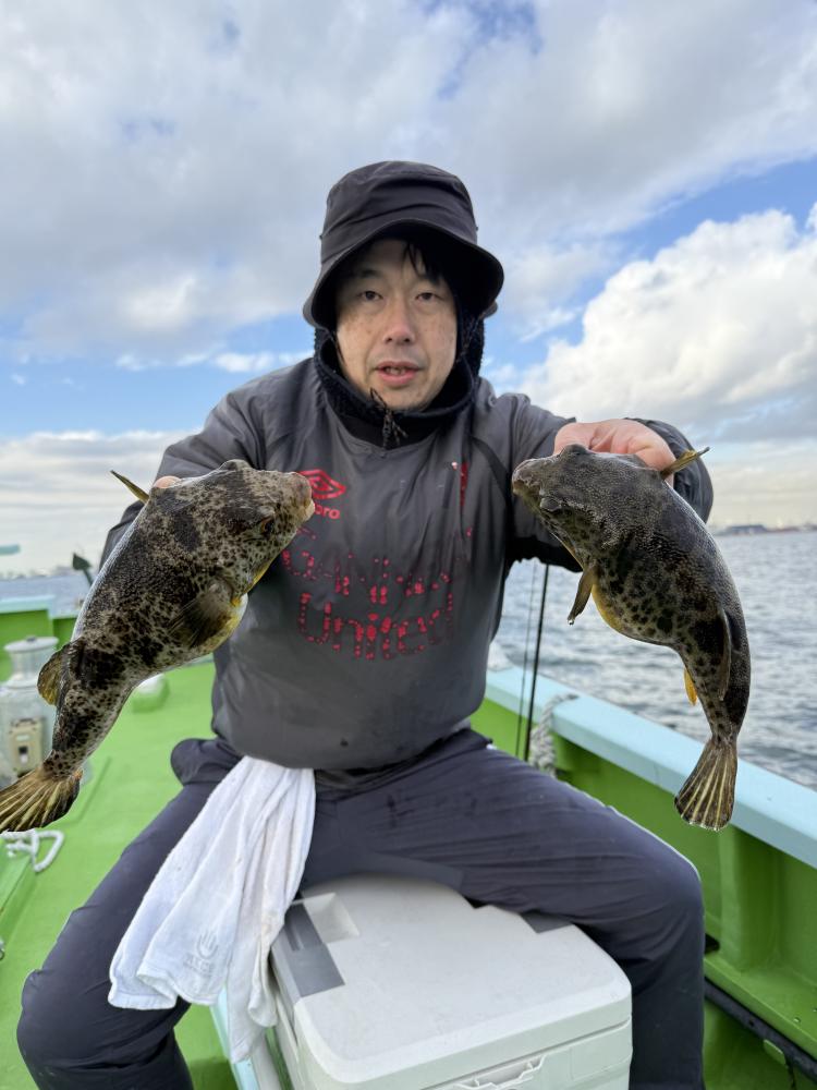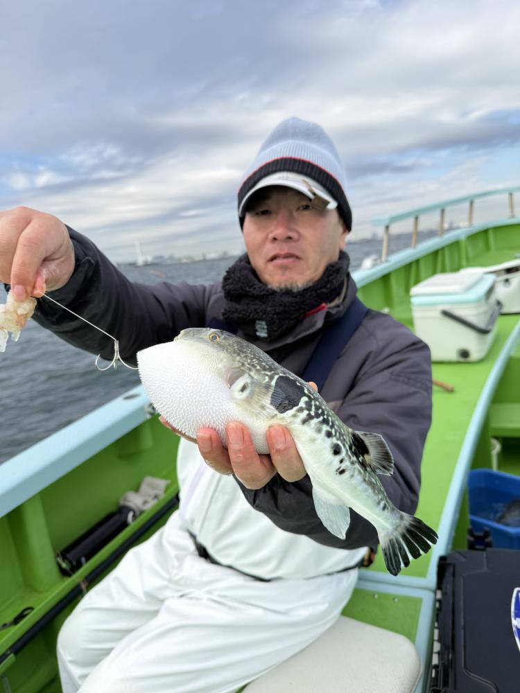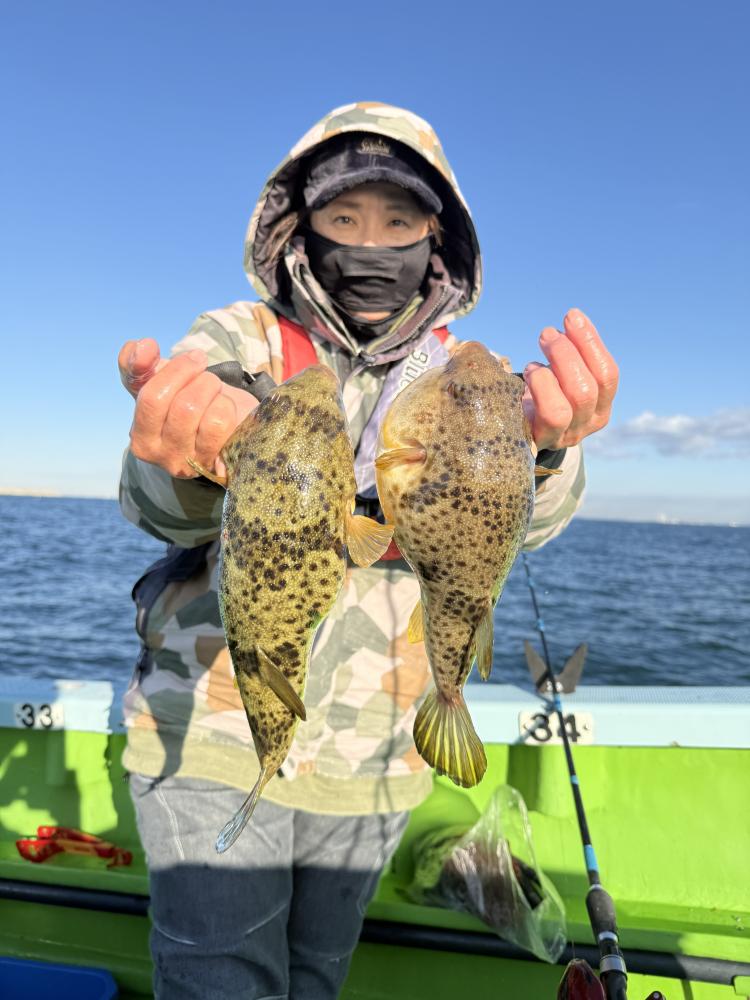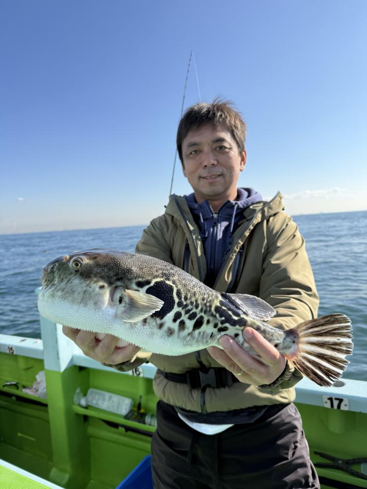 お客様8名で出船しました。一日中ポツポツとアタリ、バレもありましたがトップは10回ヒットで10枚ゲット!1名型を見られず残念でしたが、船中23枚でした。型は1㎏位が多かったです。外道は、ホウボウ、カサゴ、ムシガレイ、トラフグ、ショゴでした。明日は北風が強く出船中止です。明後日は風は収まり出船したいのですが予約は今の所1名です。2名からの出船になりますので、ご予約よろしくお願いします。年老いたキャプテン勇治。