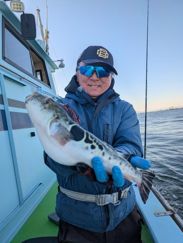 トラフグ専門!前半は海が悪く船中3匹で大苦戦凪た後半はポツポツ空振り無く釣れてトップは3匹、2番手2匹で最大は2.3キロゲットでした。明日も予約は少なめだけど出船確定してます!明日は凪予報です予約無しの飛び込みの来店大歓迎なので宜しくお願いします