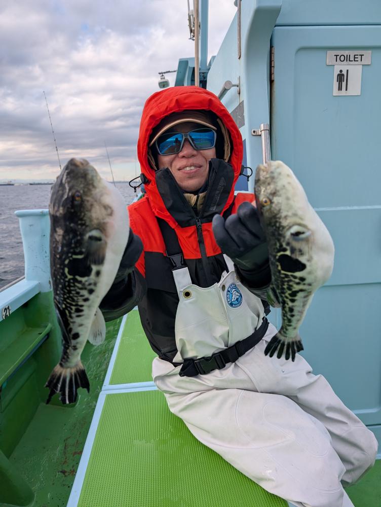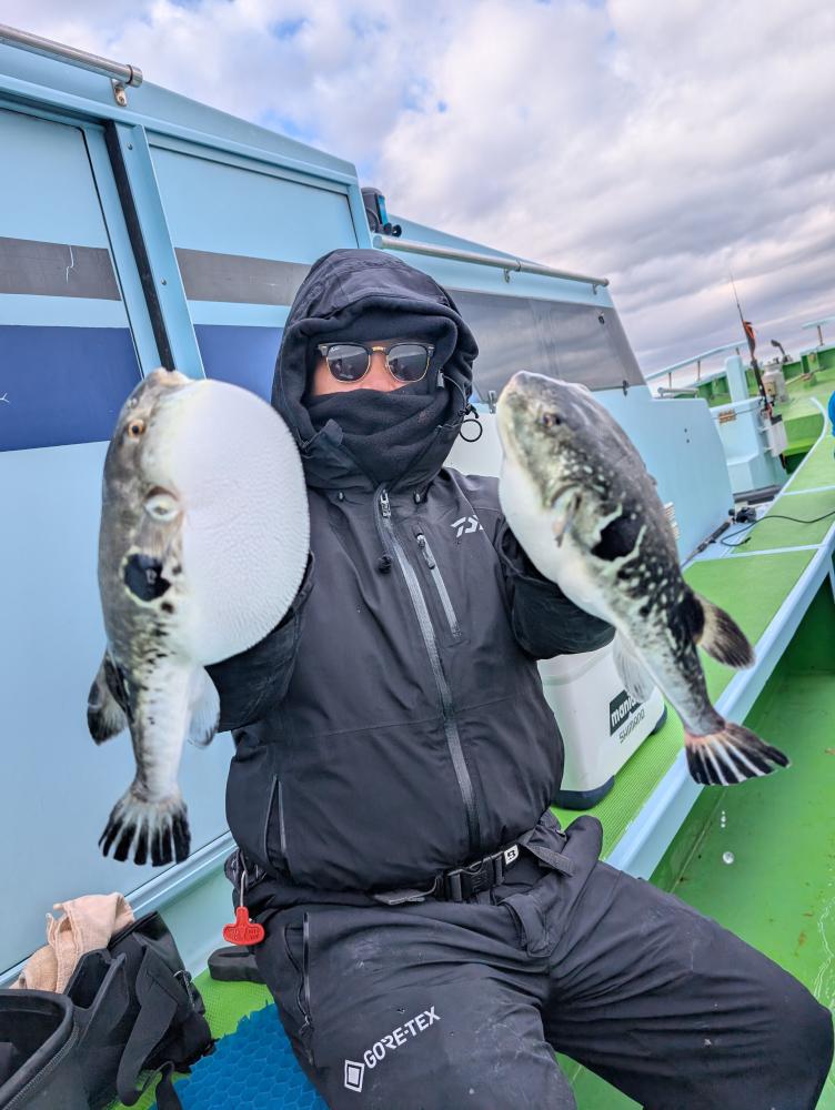 トラフグ専門!今日は出船出来ました。雪もちらつき極寒でしたがトップ5匹、2番手4匹で最大は1.4キロの良型ゲットでした金曜日も出船確定してます!金曜も出船確定してます!週末予約ガラガラです。これからの御予約お待ちしております